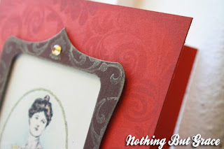 Once again, I just thought this "Cameo" digi stamp was so lovely! I love the look in her eyes. I love the waves in her hair. I love the ruffle on her high neck line! Just love it!